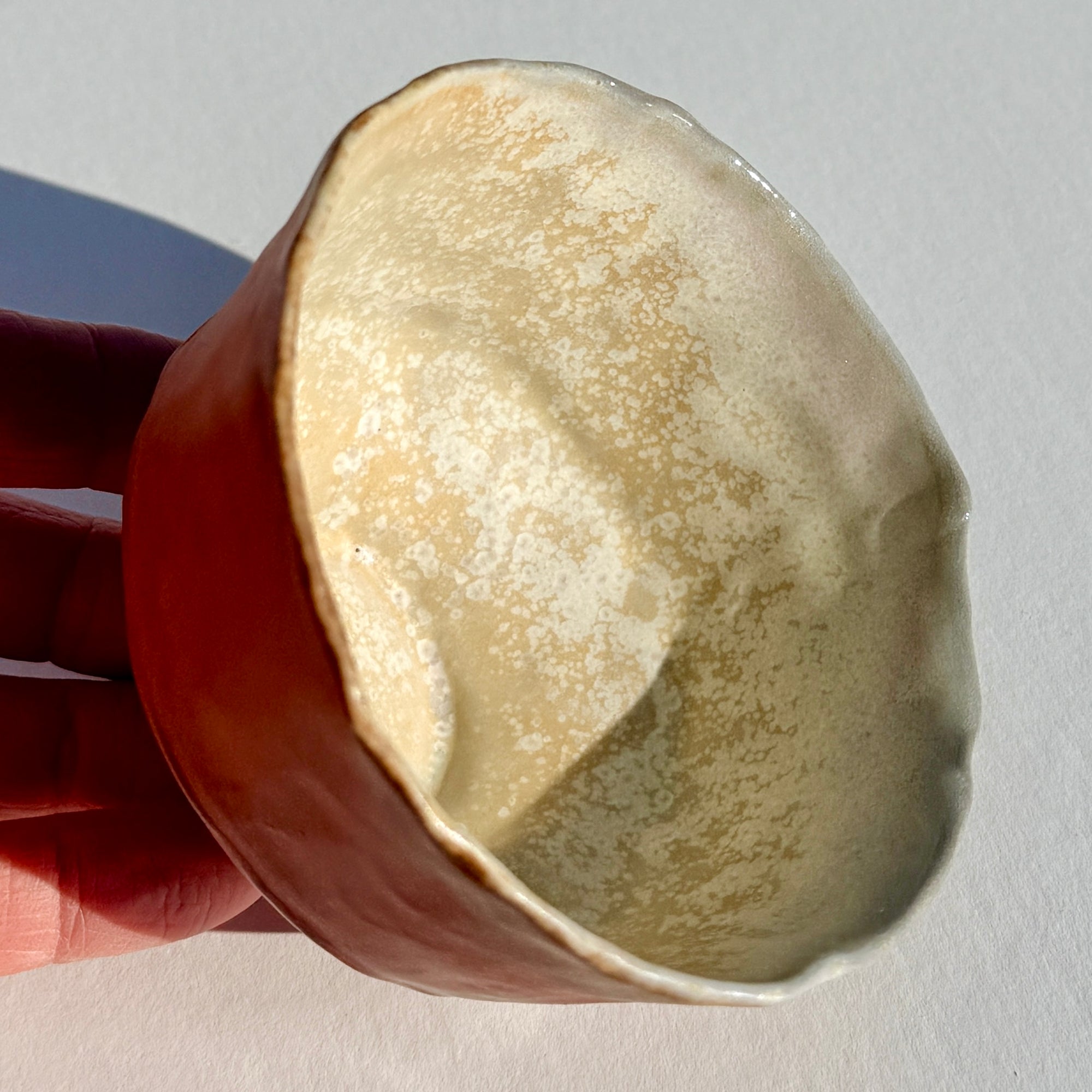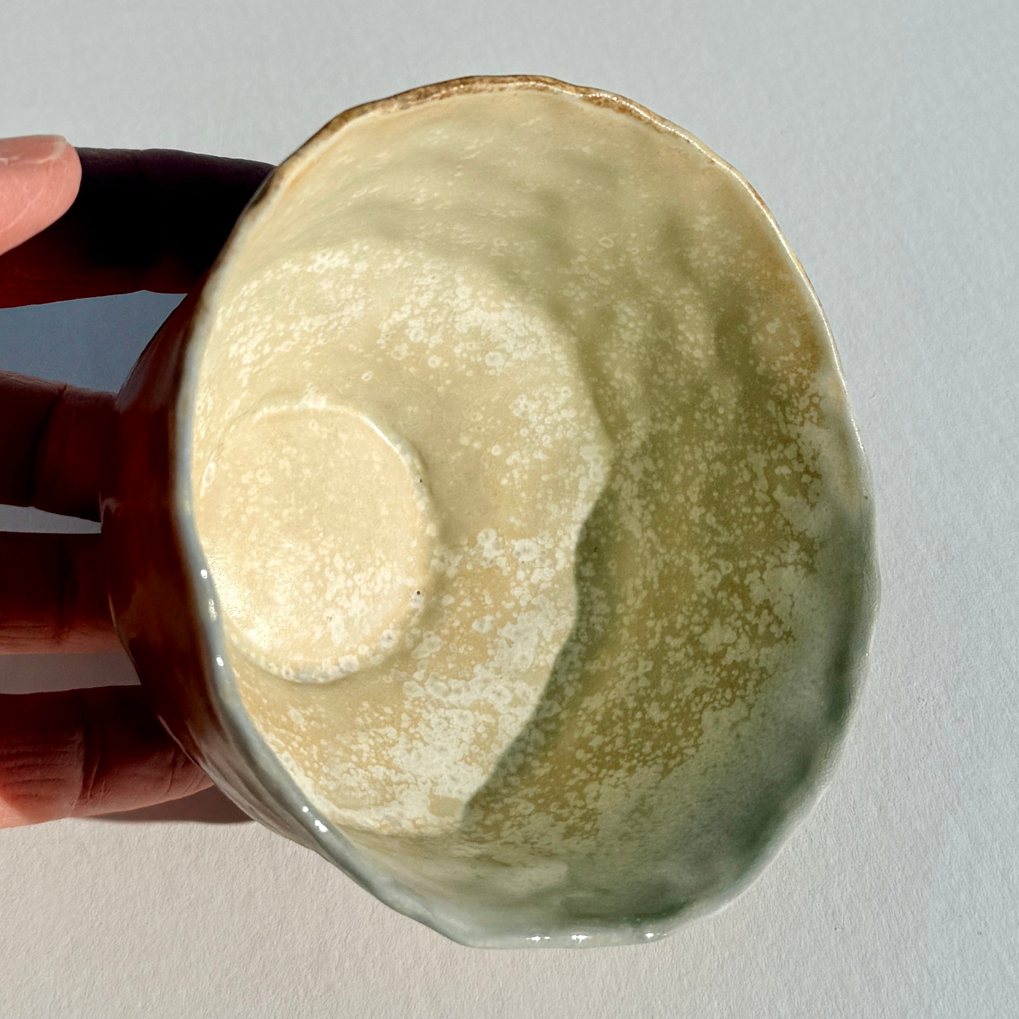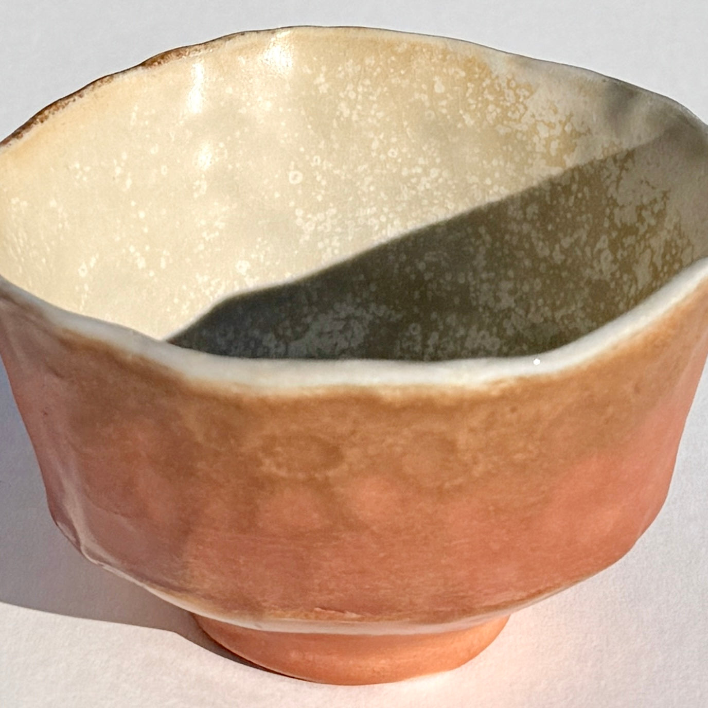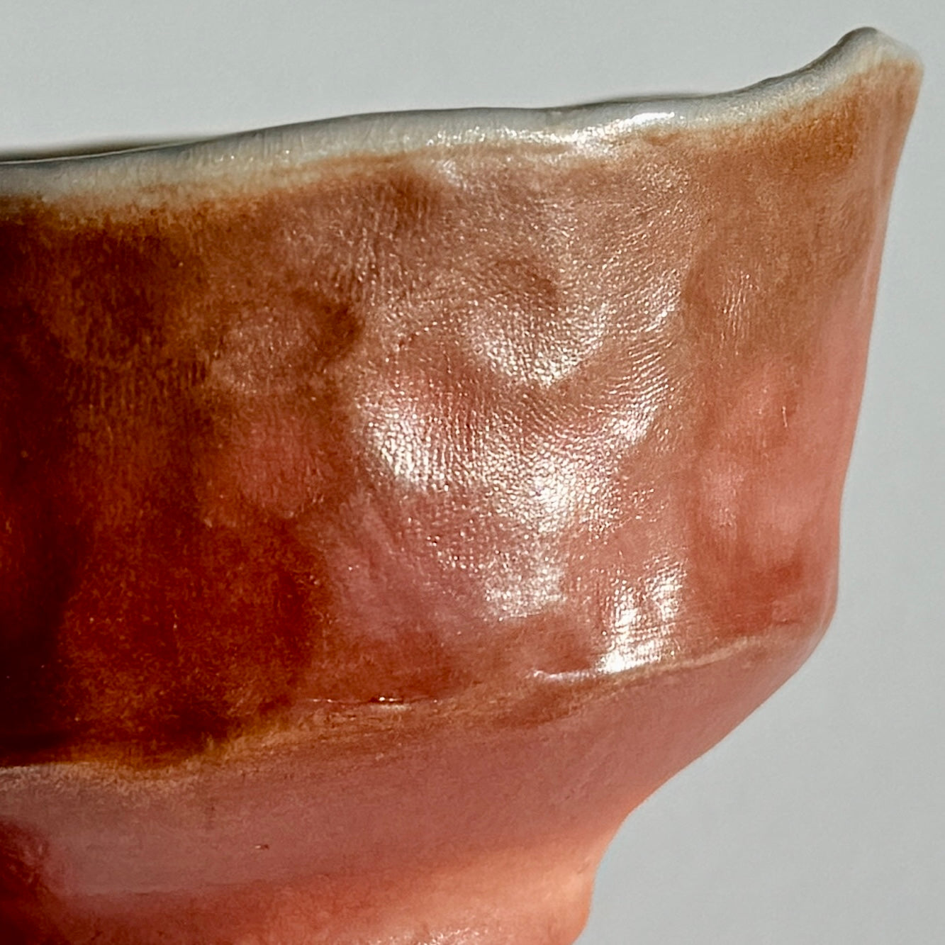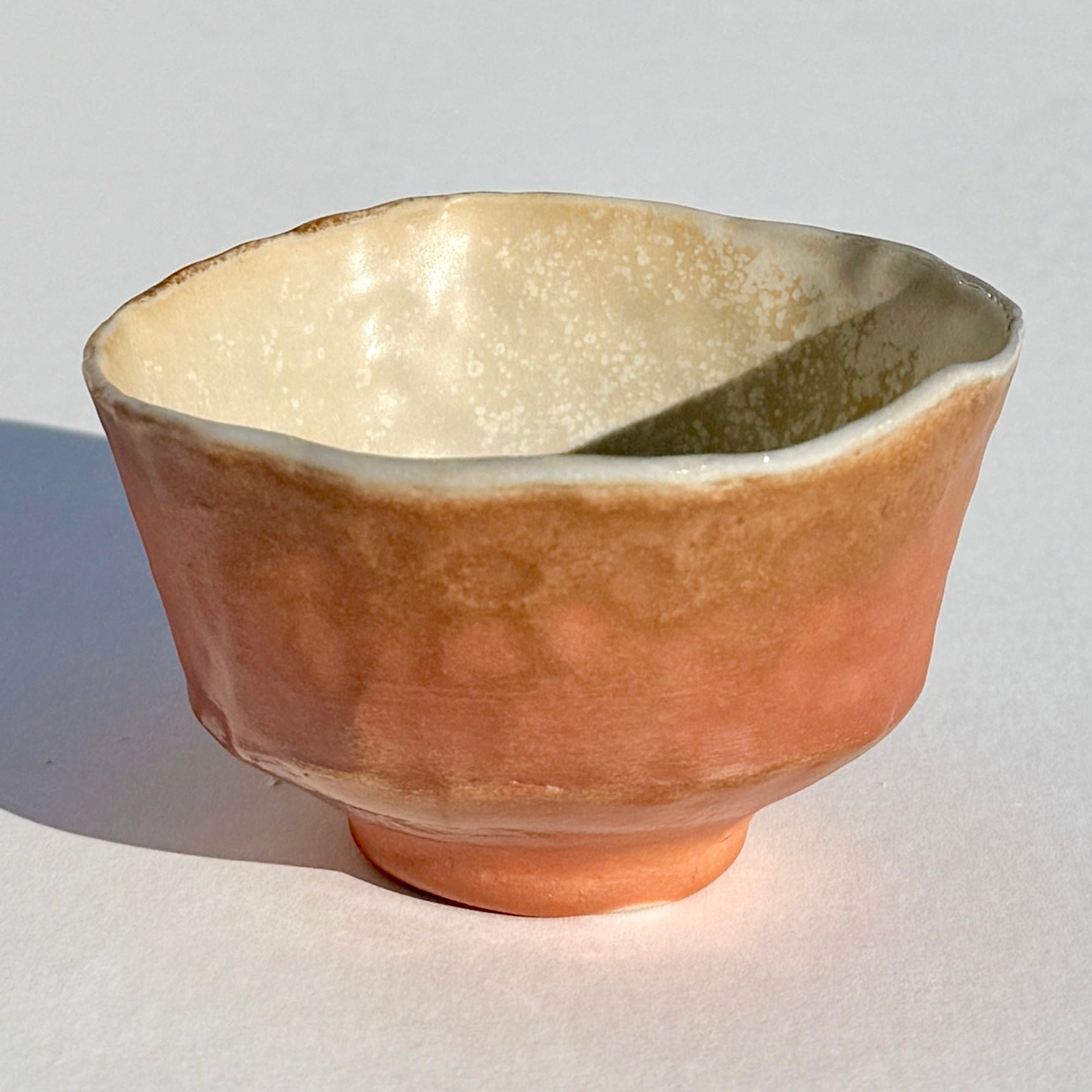 A lustrous light brown wood fired bowl.