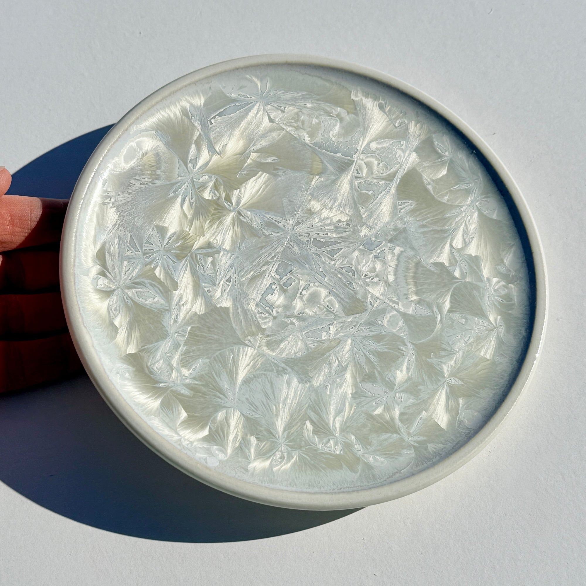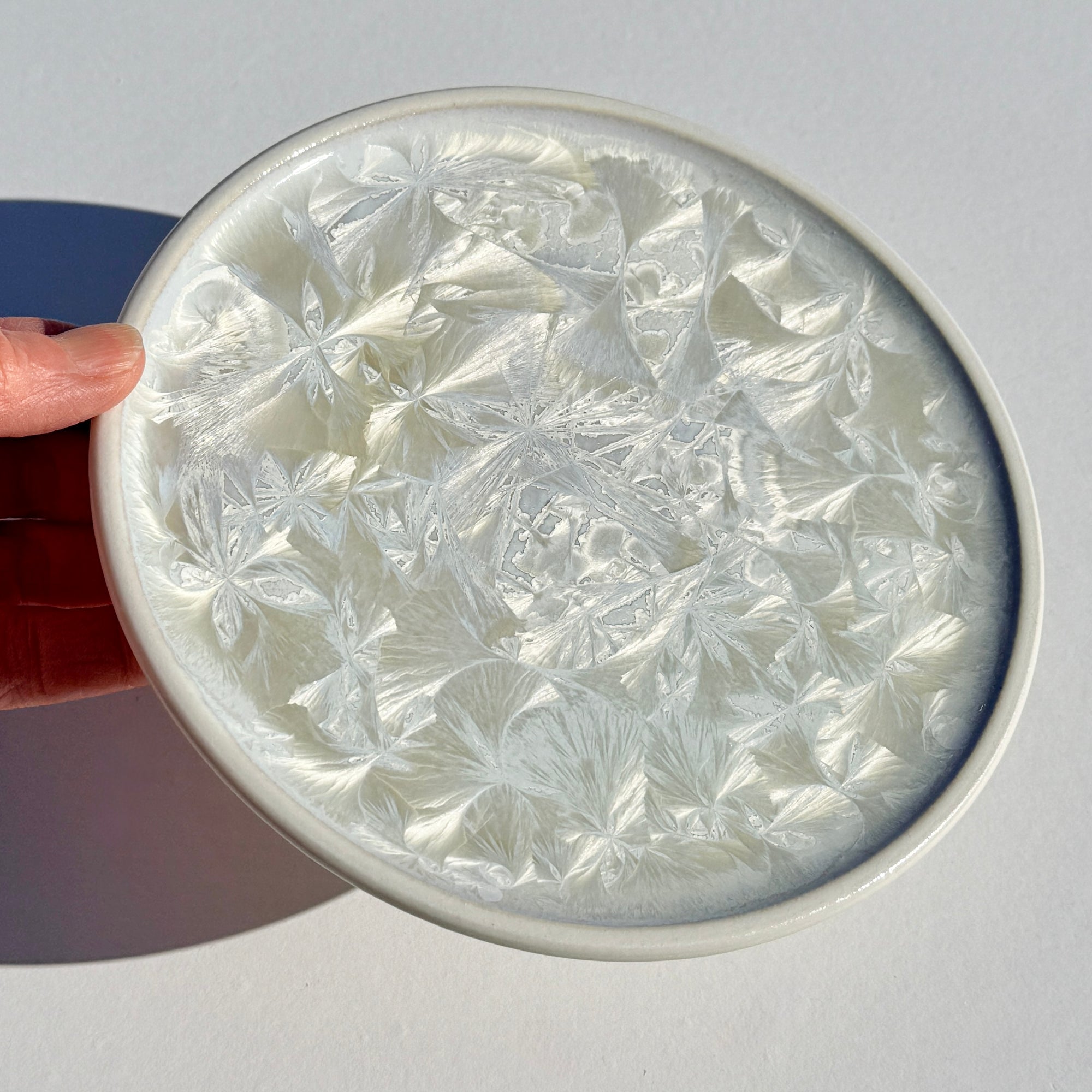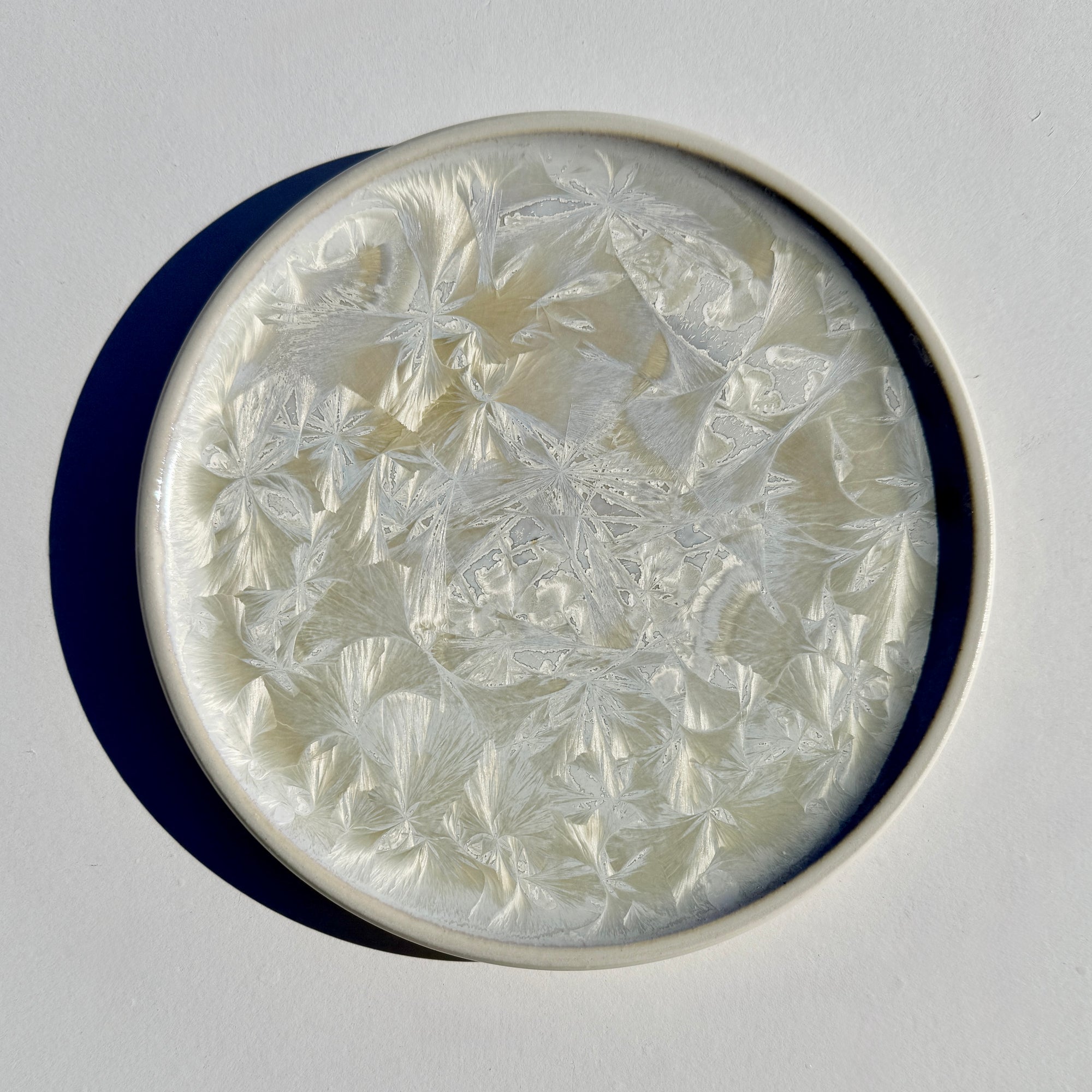 This white crystalline plate measures 16-17 centimetres in diameter and is ideal as a bread and butter (side) plate but also functions as an appetizer plate.