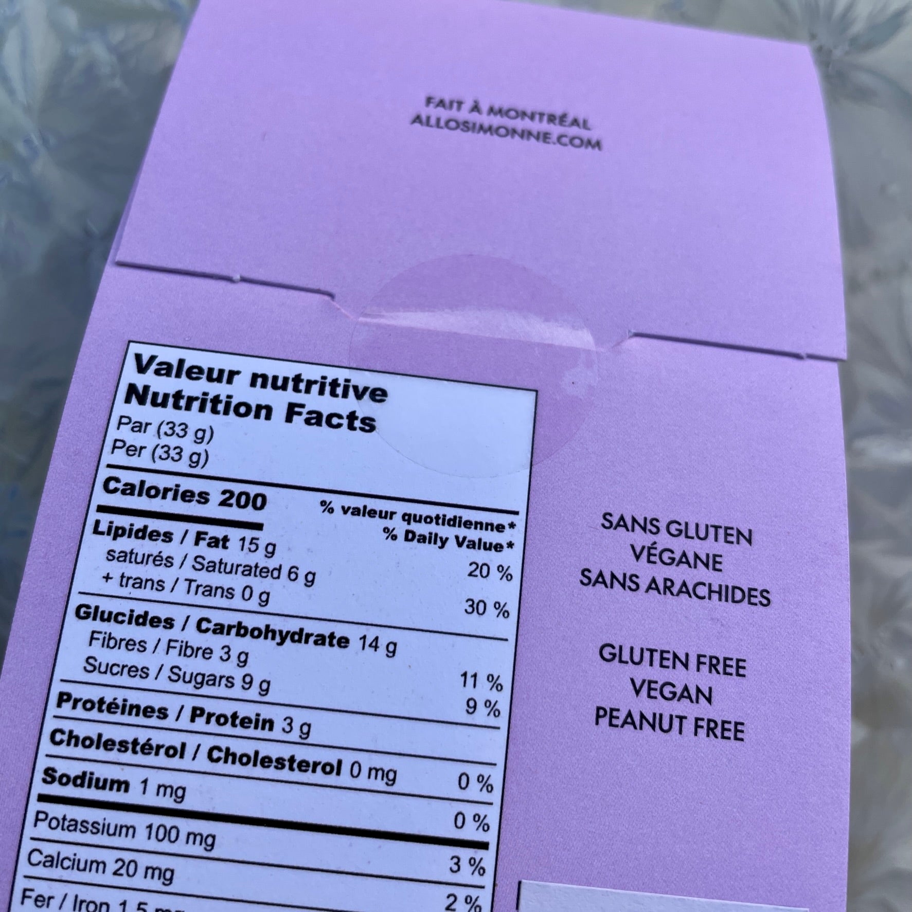 Gluten free, vegan, and peanut free (contains hazelnuts, may contain traces of other nuts)