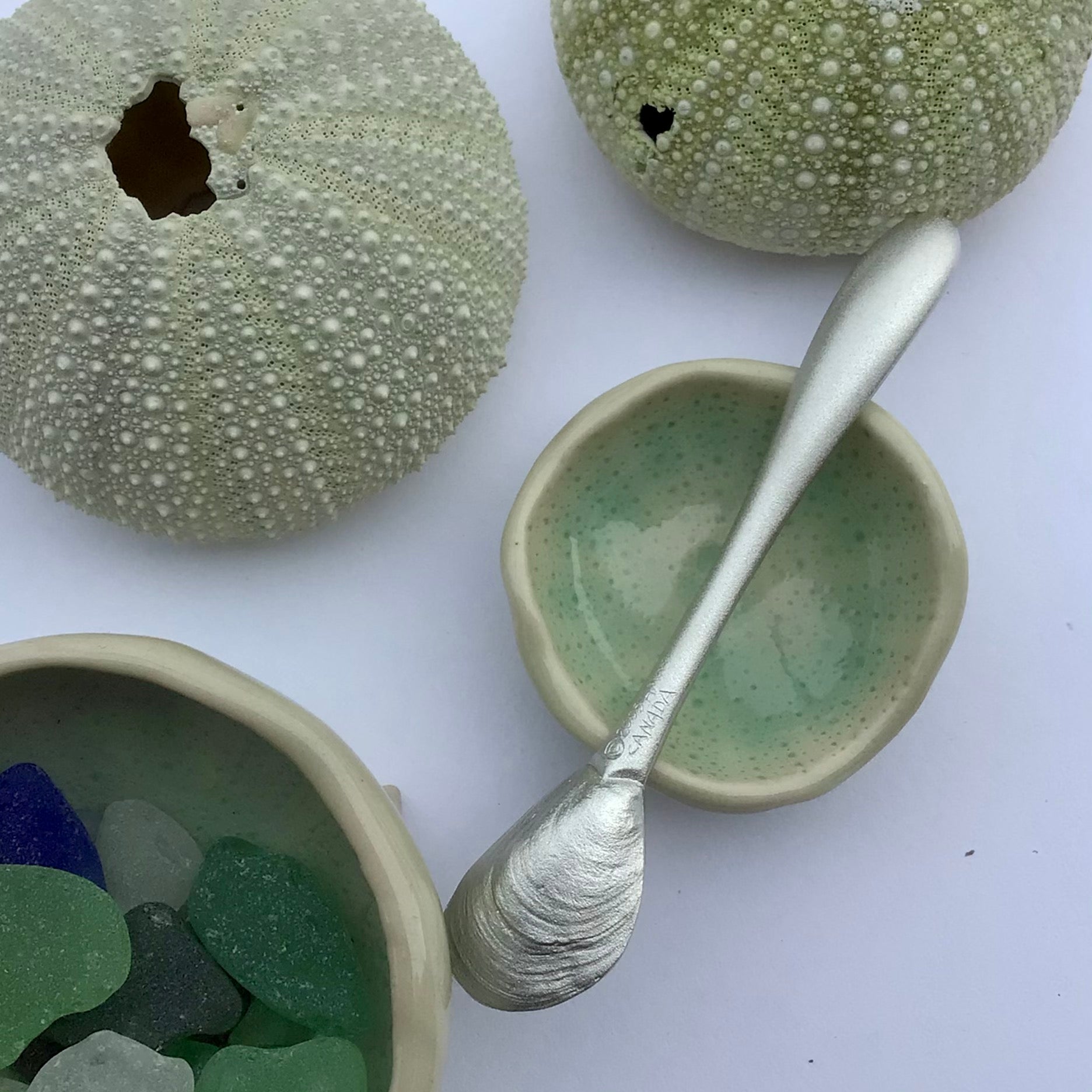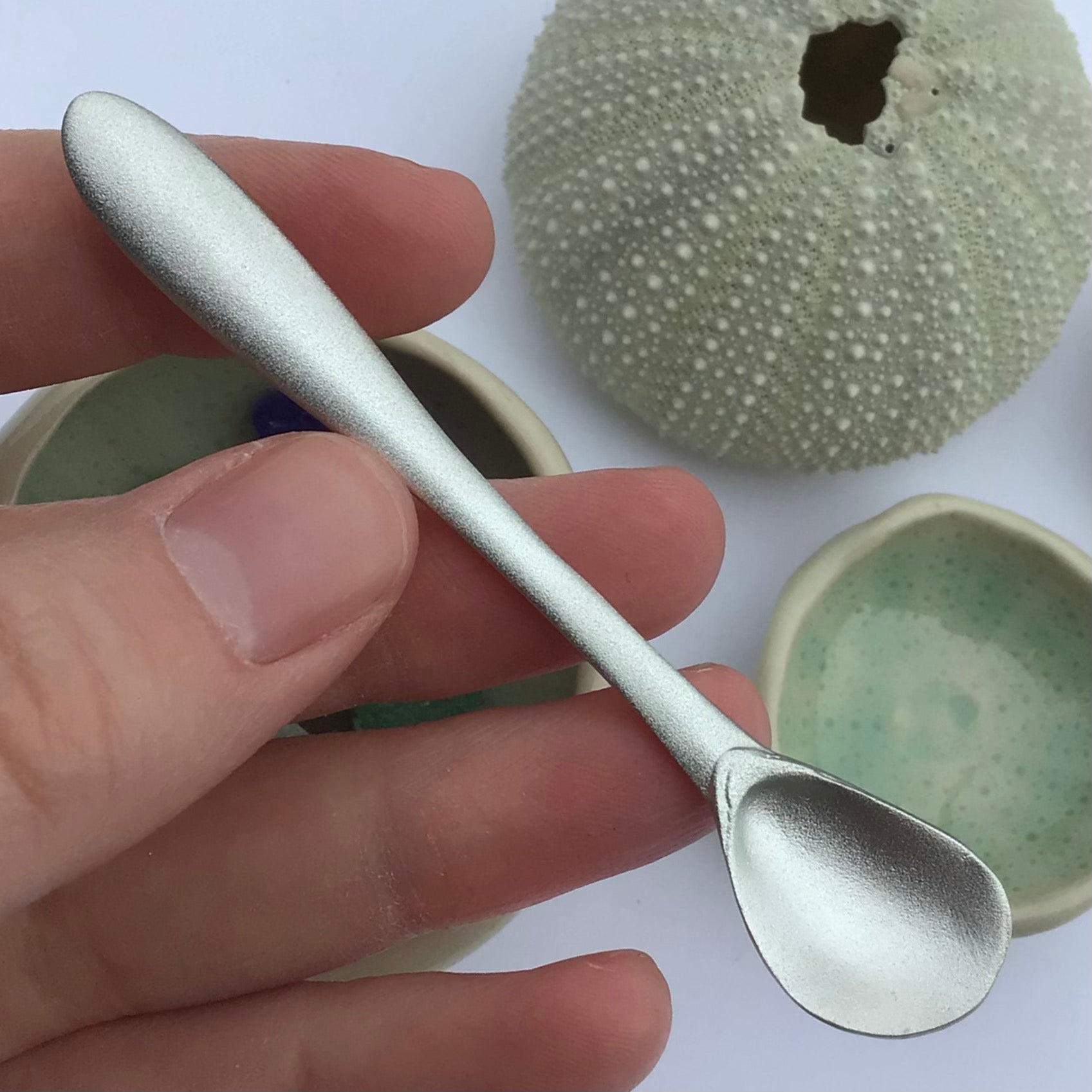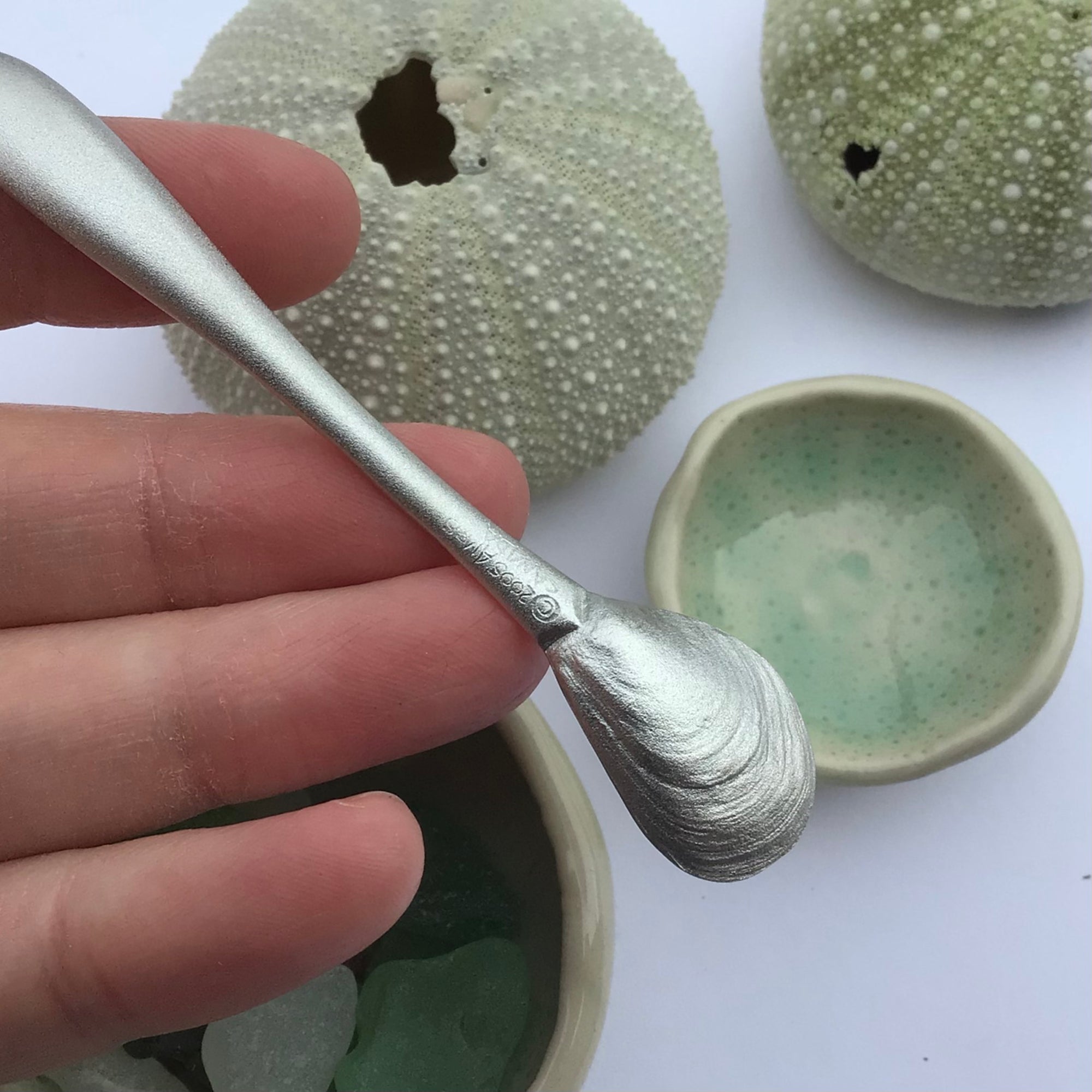 Tiny mussel-shaped spoon, perfect for salt.