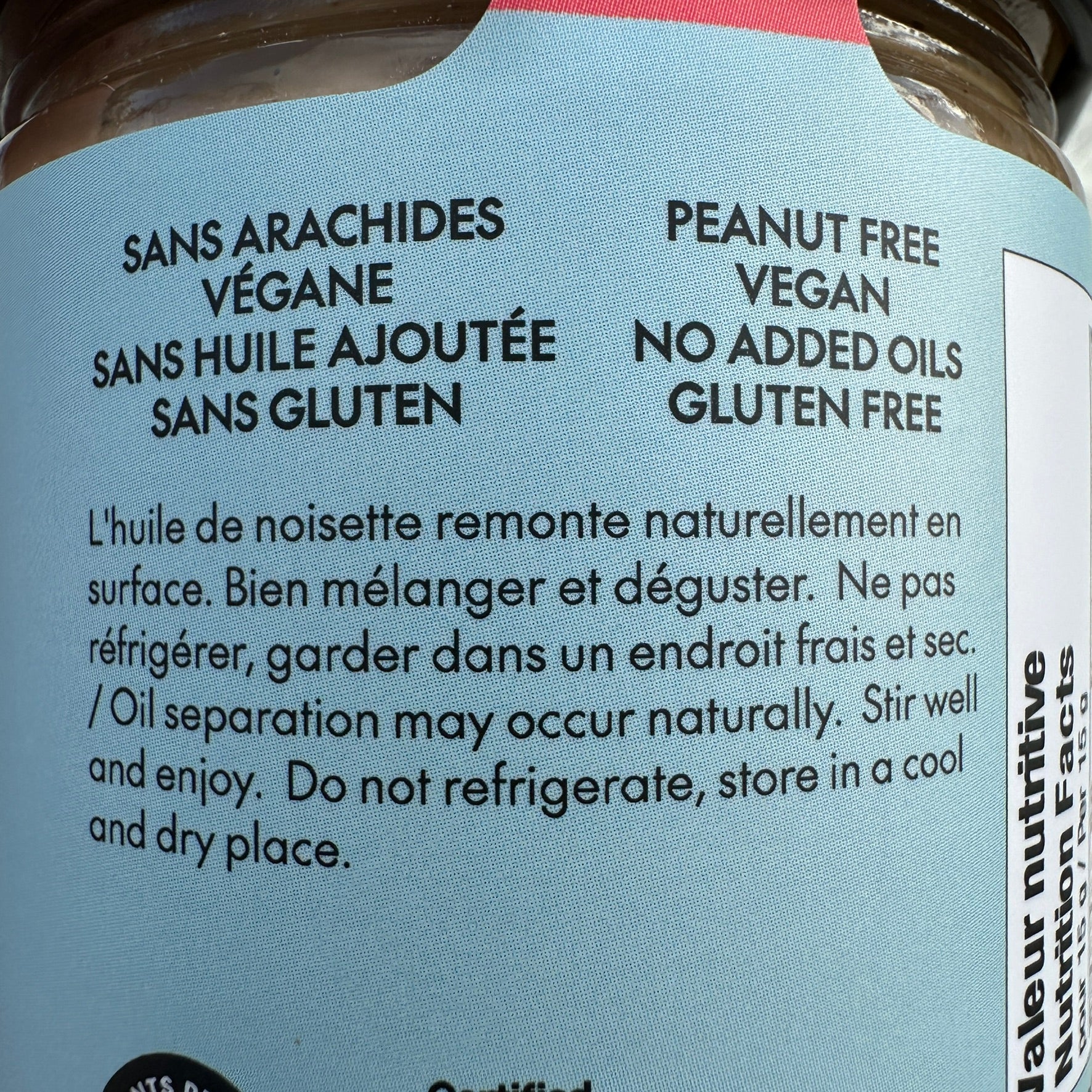 Gluten free, vegan, and peanut free (contains hazelnuts, may contain traces of other nuts)