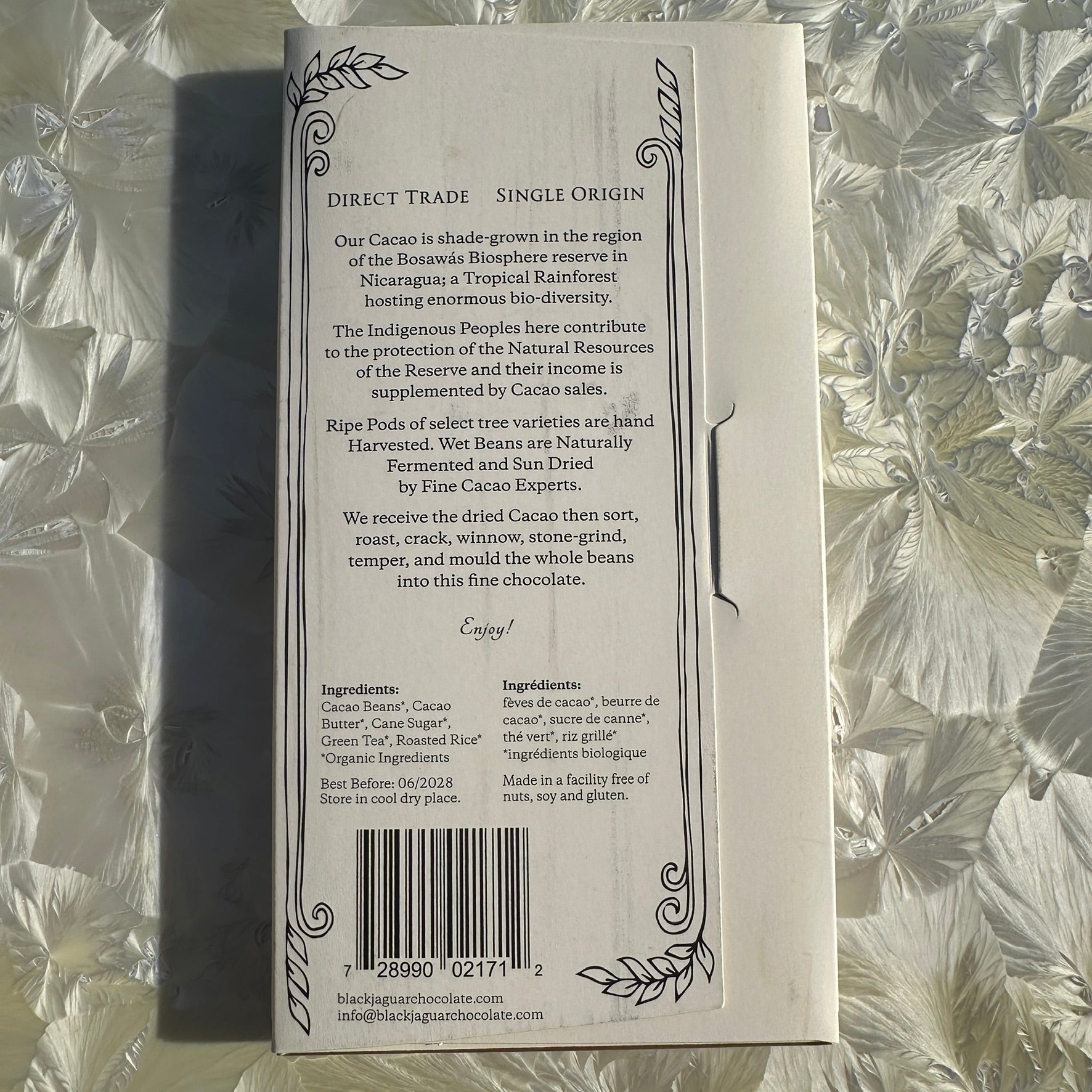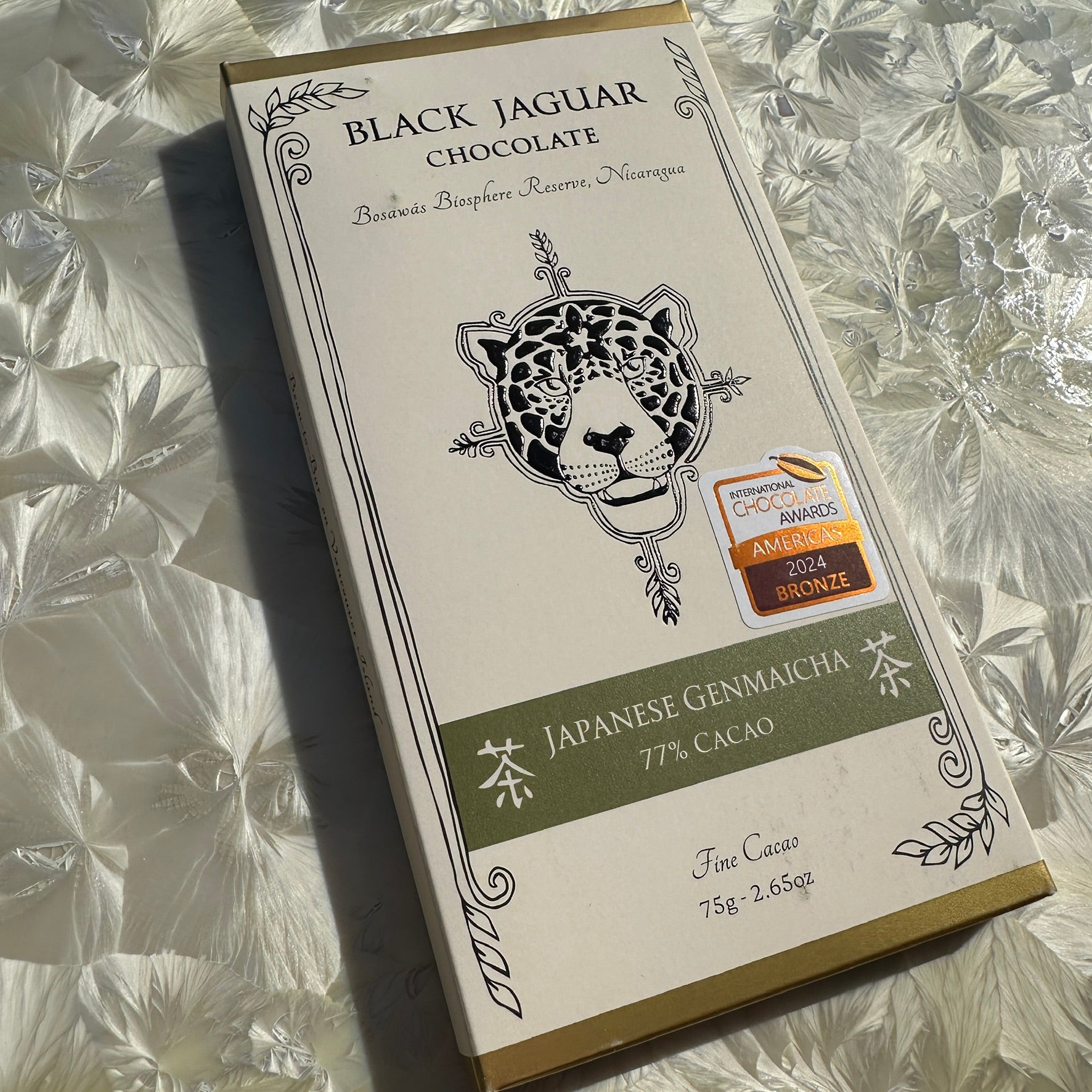 Black Jaguar Japanese Genmaicha 77% Dark Chocolate Bar