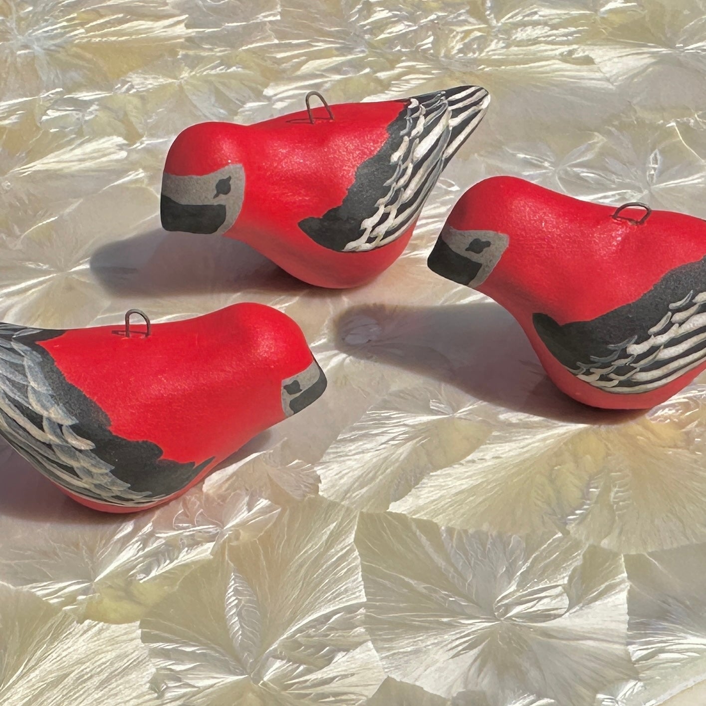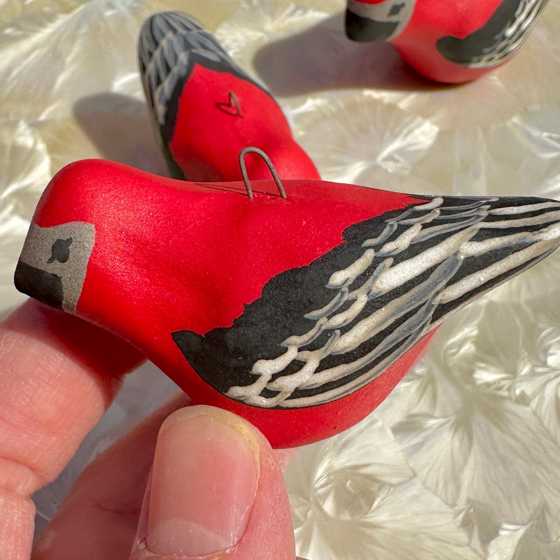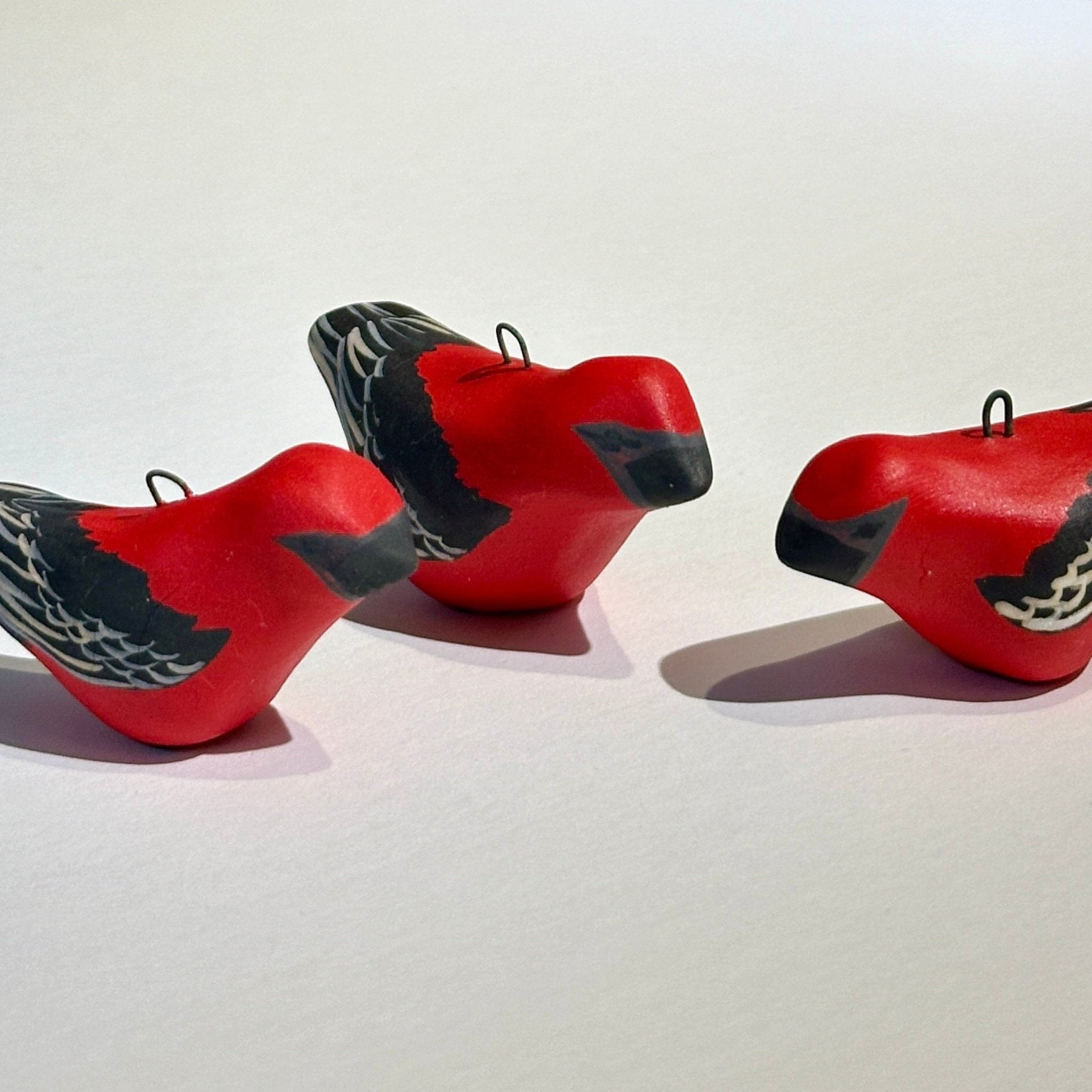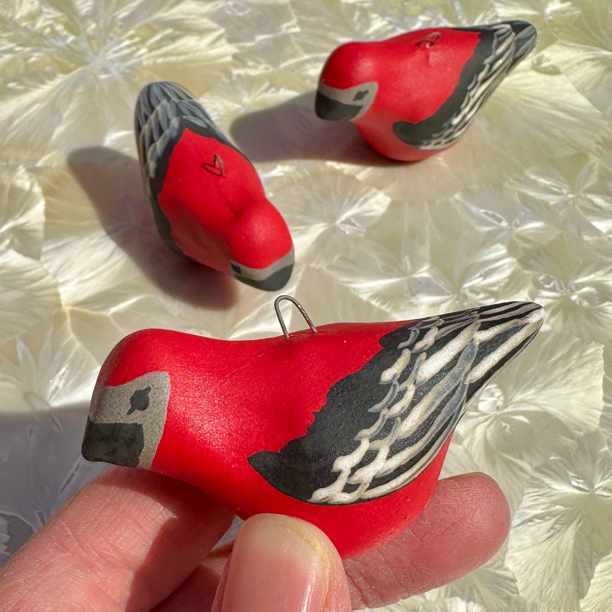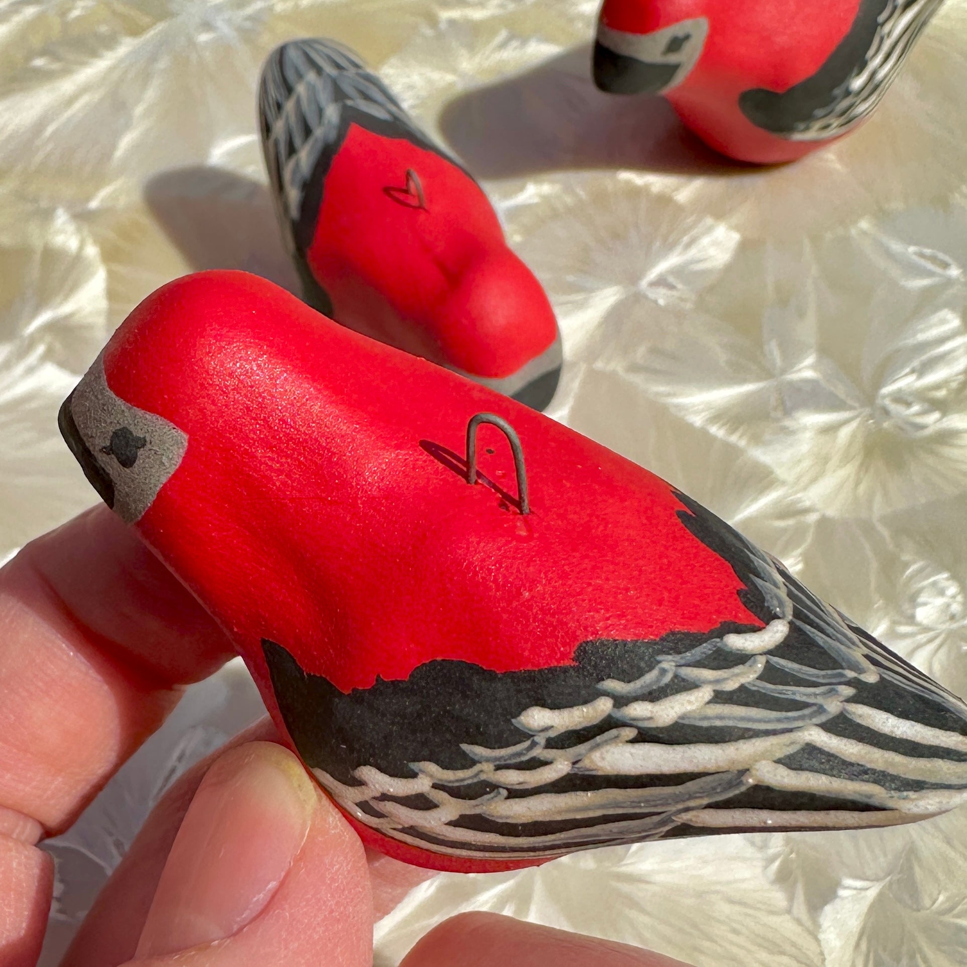 These little birds are decorated with underglaze paints by Alexis' daughter Danica.
