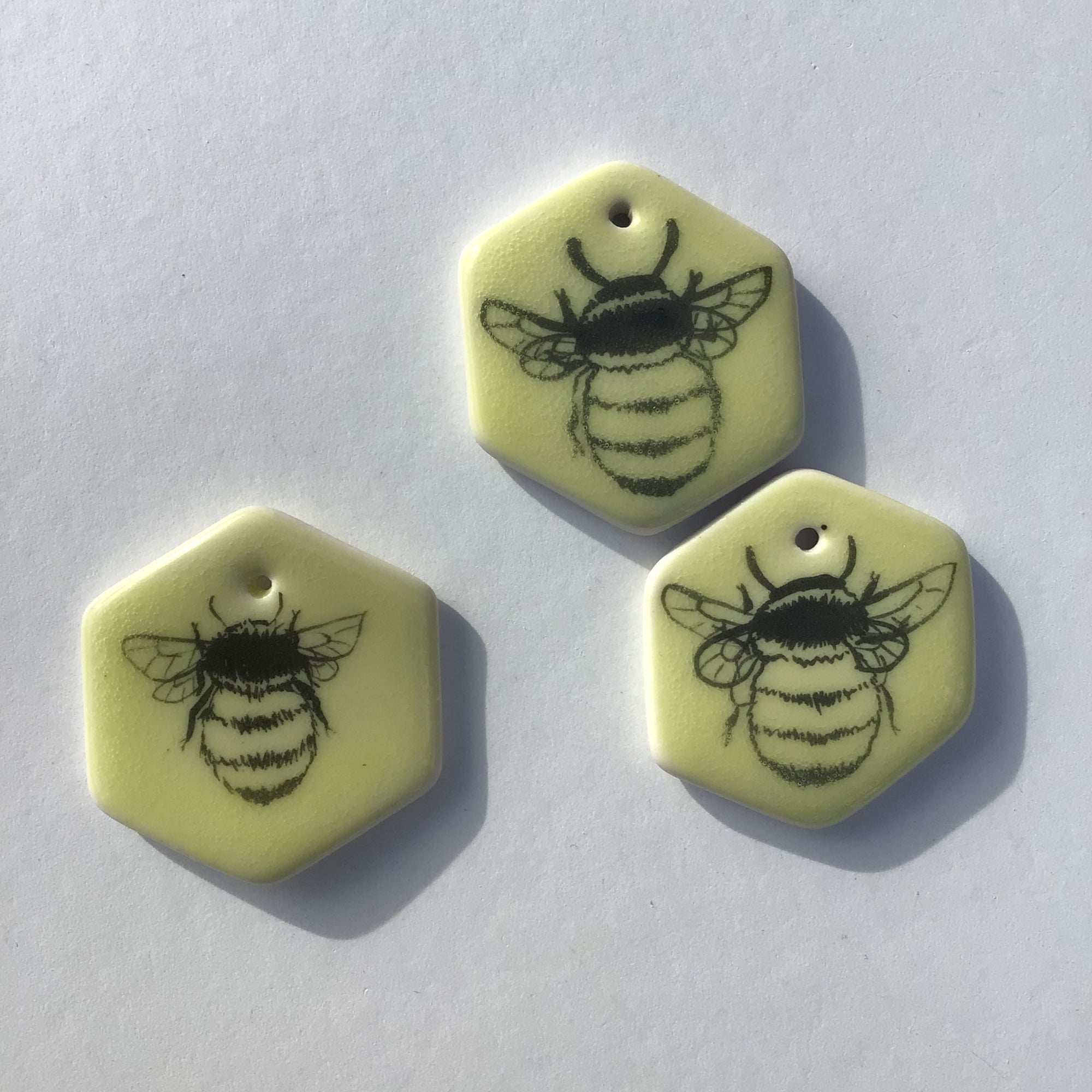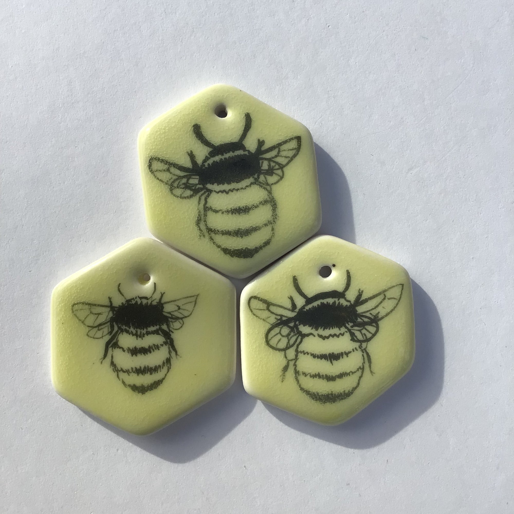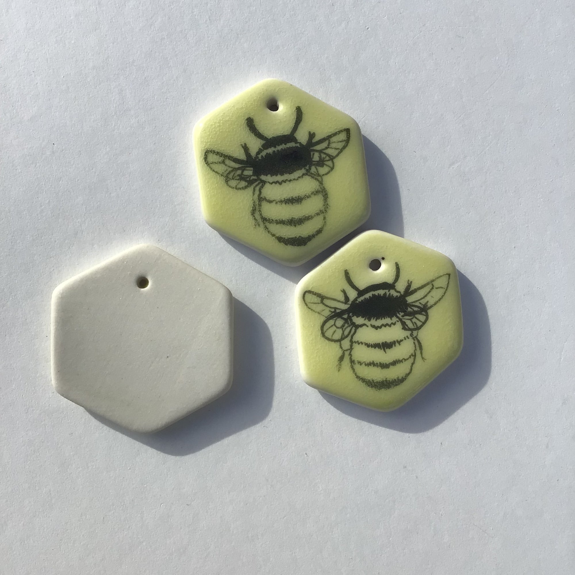 Any recent visitors to the studio have seen the sweet little hexagon bowl collaboration that Danica and I have been doing. In the R&D process for the hexagon bowls we played with some hexagon tree ornaments.
