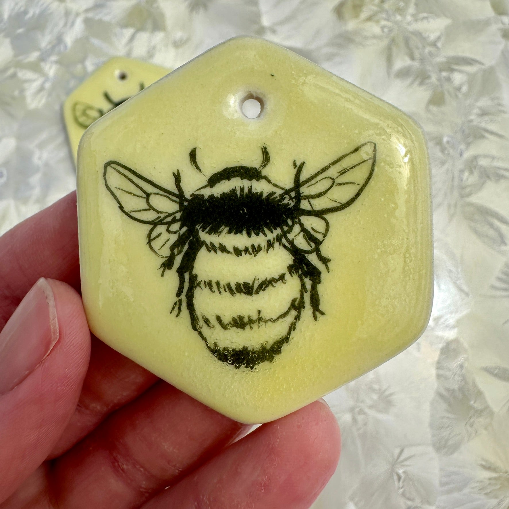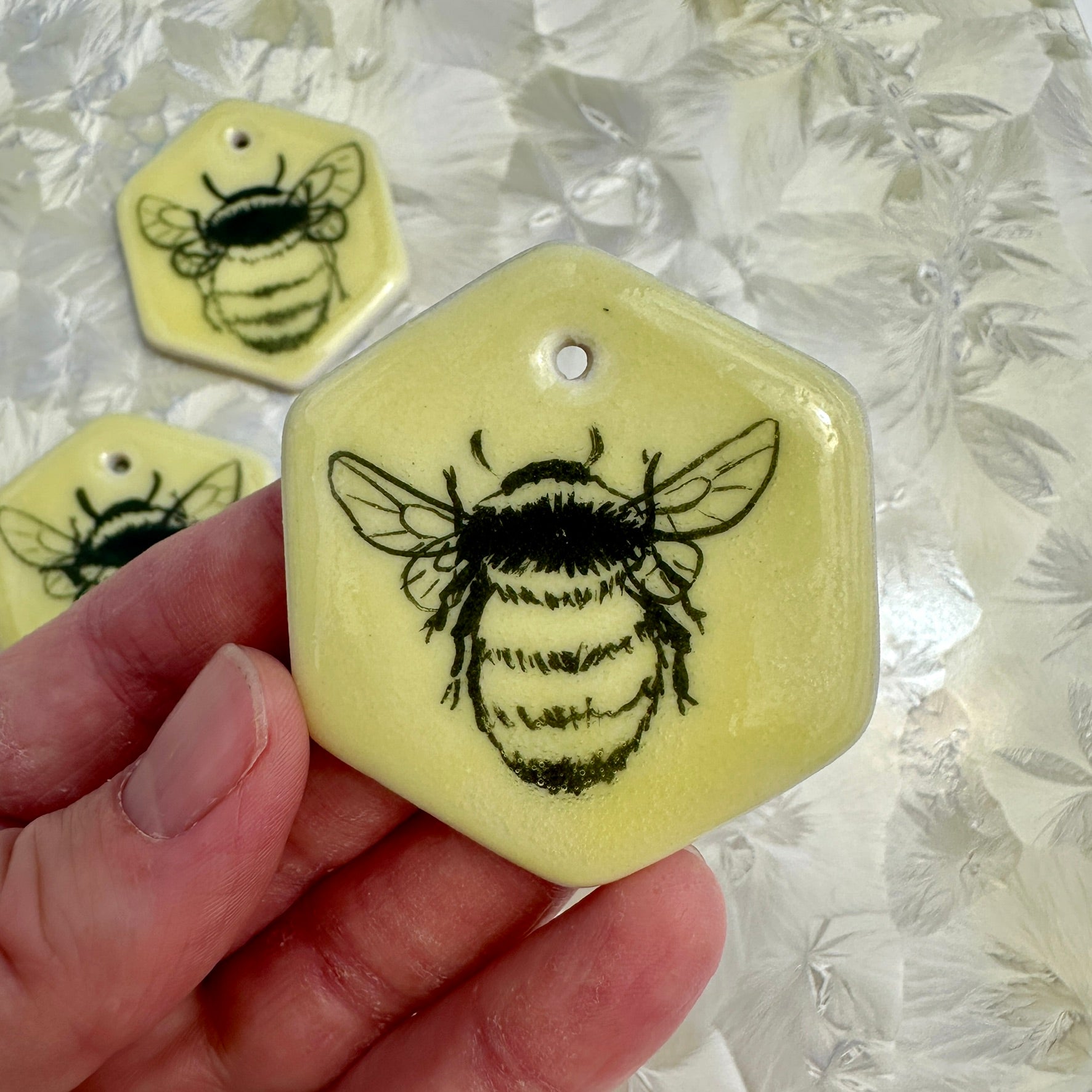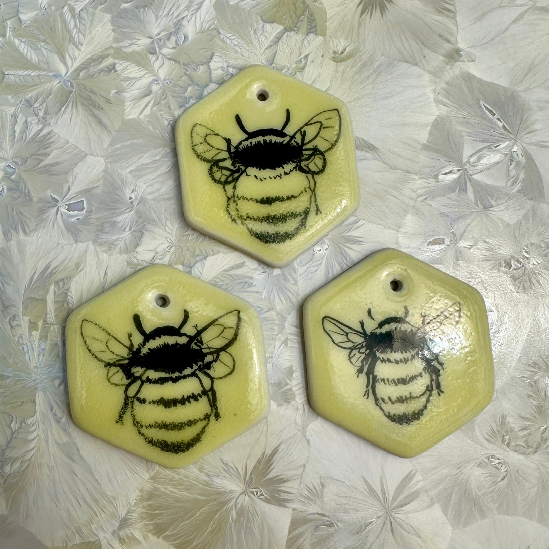 Any recent visitors to the studio have seen the sweet little hexagon bowl collaboration that Danica and I have been doing. In the R&D process for the hexagon bowls we played with some hexagon tree ornaments.