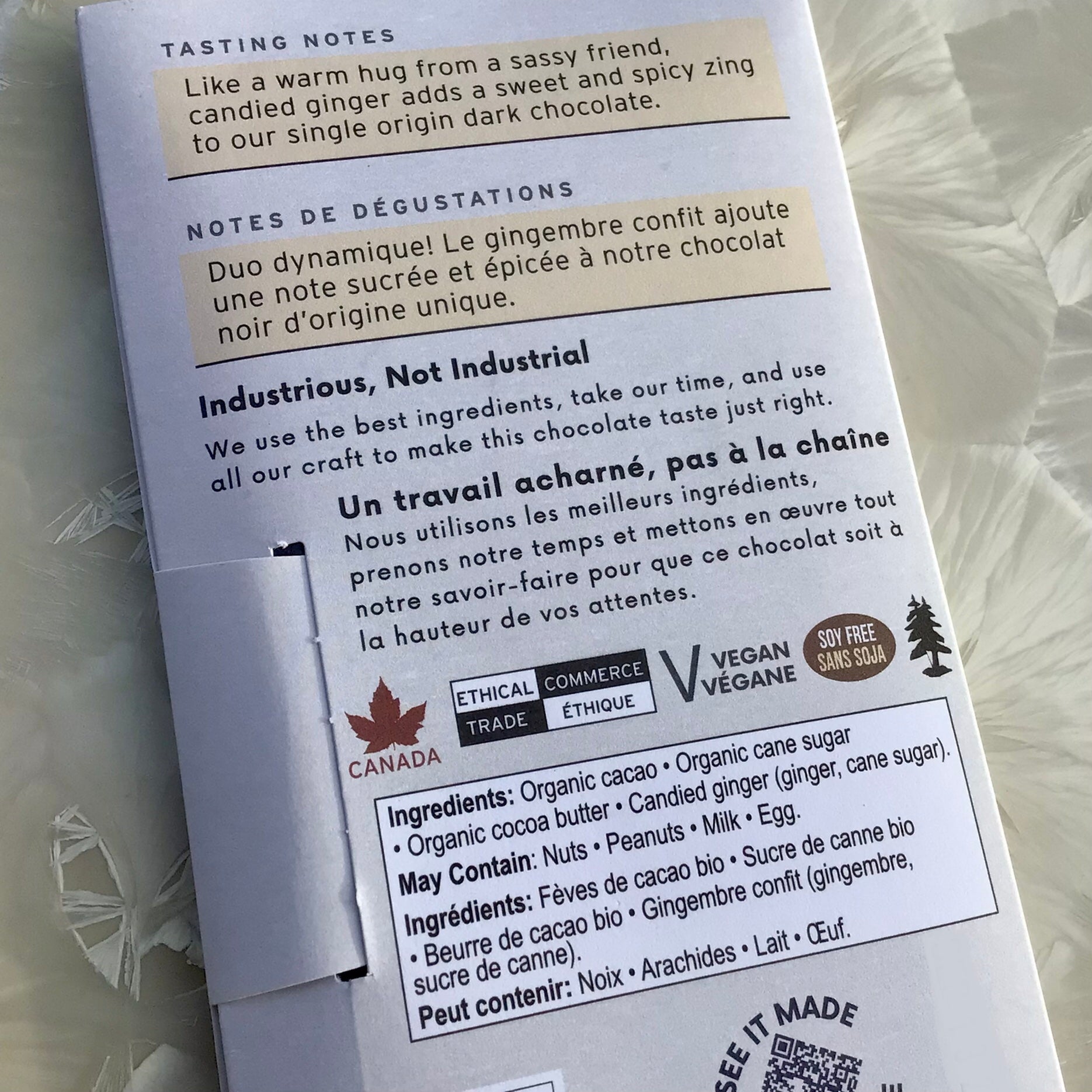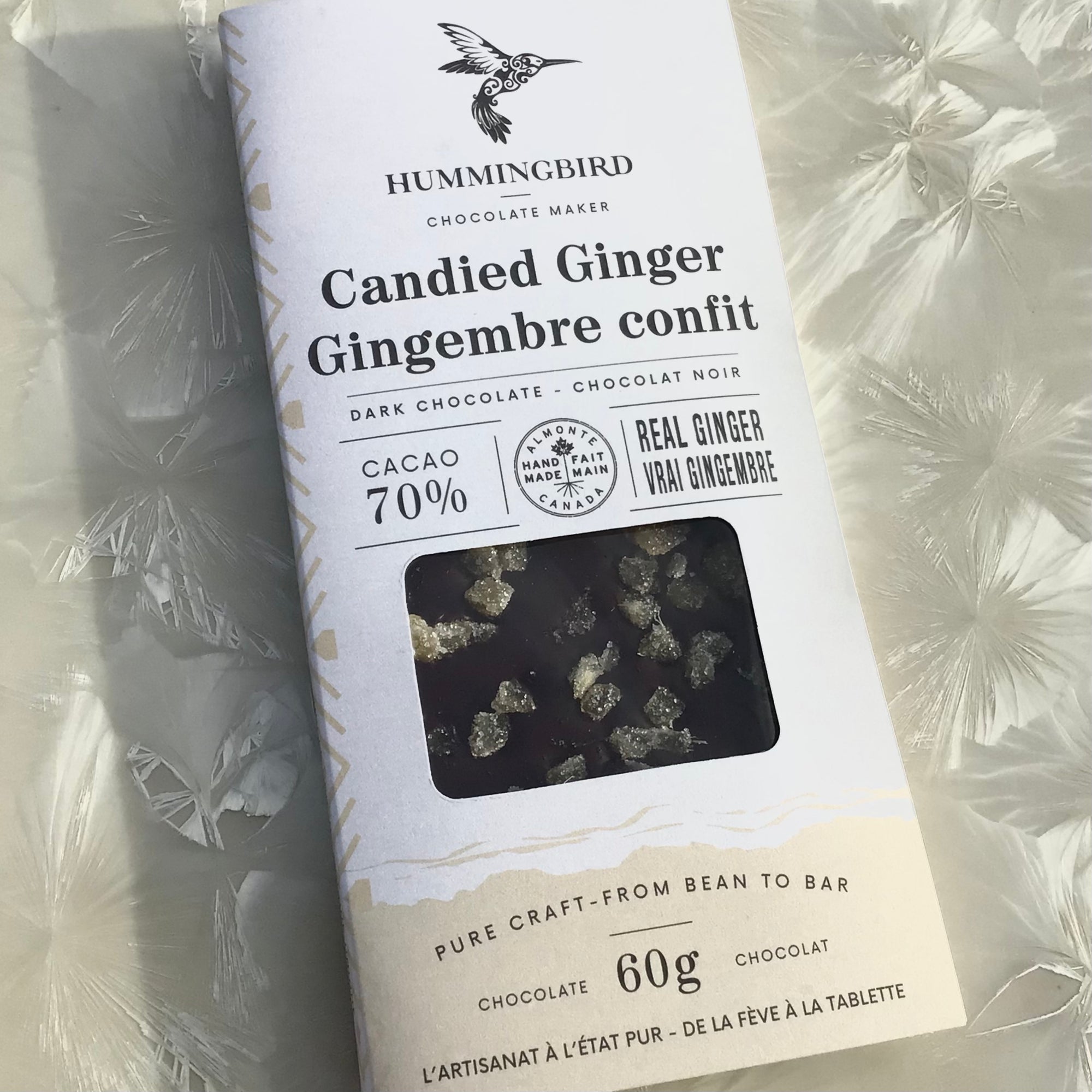 This 70% Peruvian chocolate bar is embedded with delicious chunks of candied ginger!