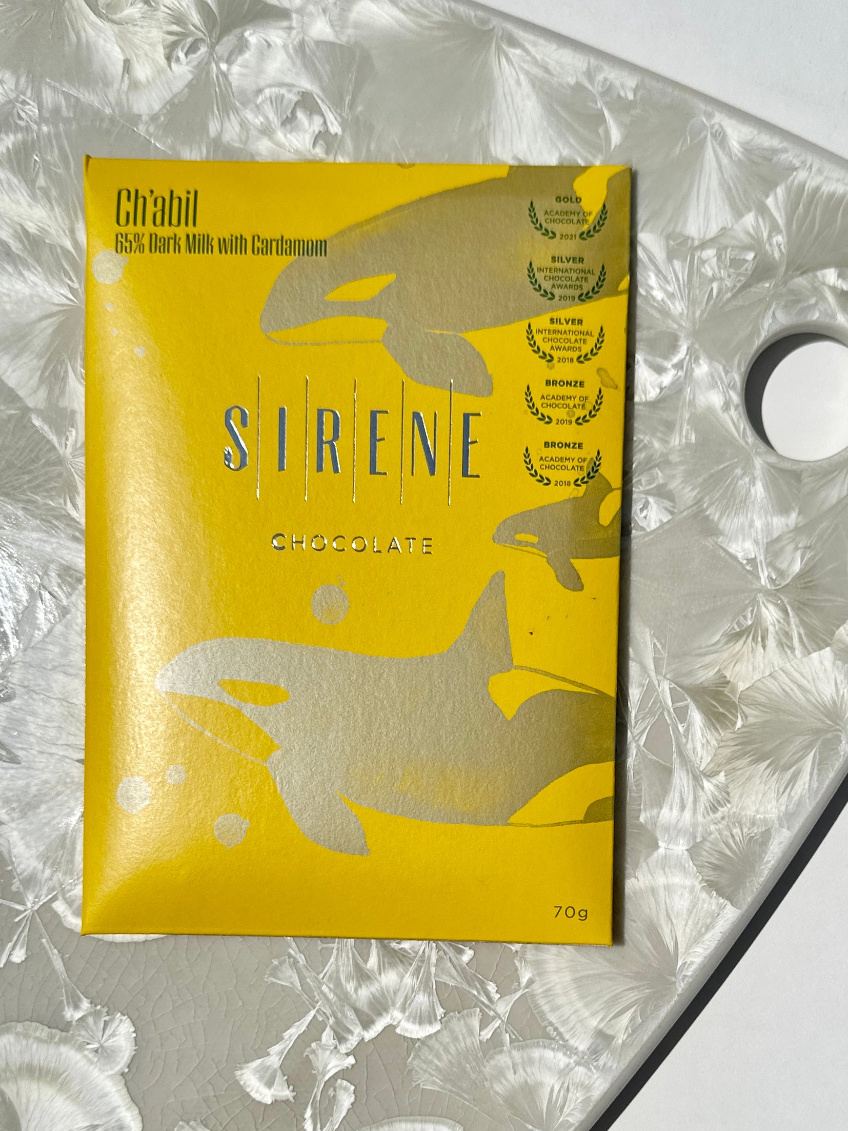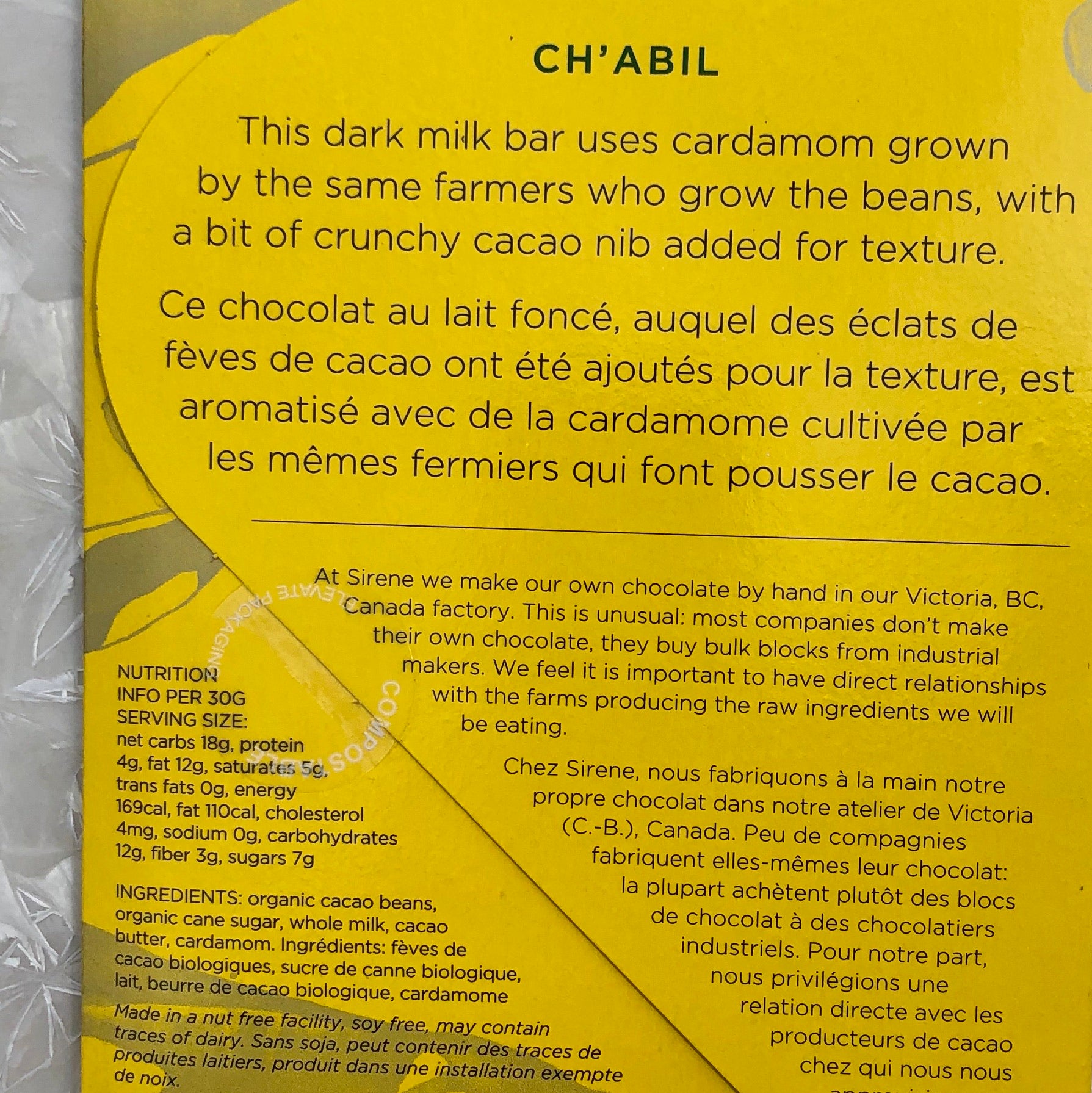 This dark milk bar uses cardamom grown by the same farmers who grow the cocoa beans, with a bit of crunchy cacao nib added for texture.