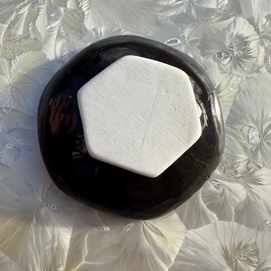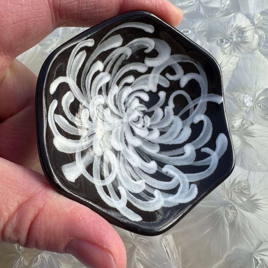 Black Honeycomb Dish with White Chrysanthemum #N2863