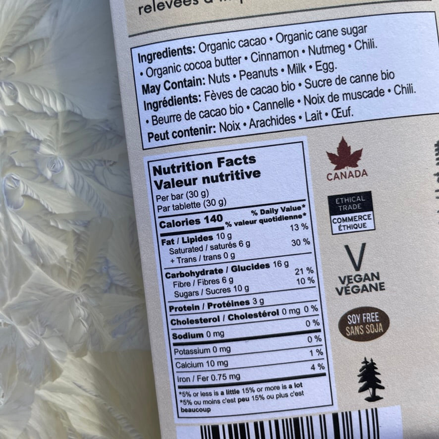 Spice is Nice! Enjoy the combination of 68% single origin, dark chocolate with a rich and intricate blend of warming spices. A delicious, comforting and lovely bar.