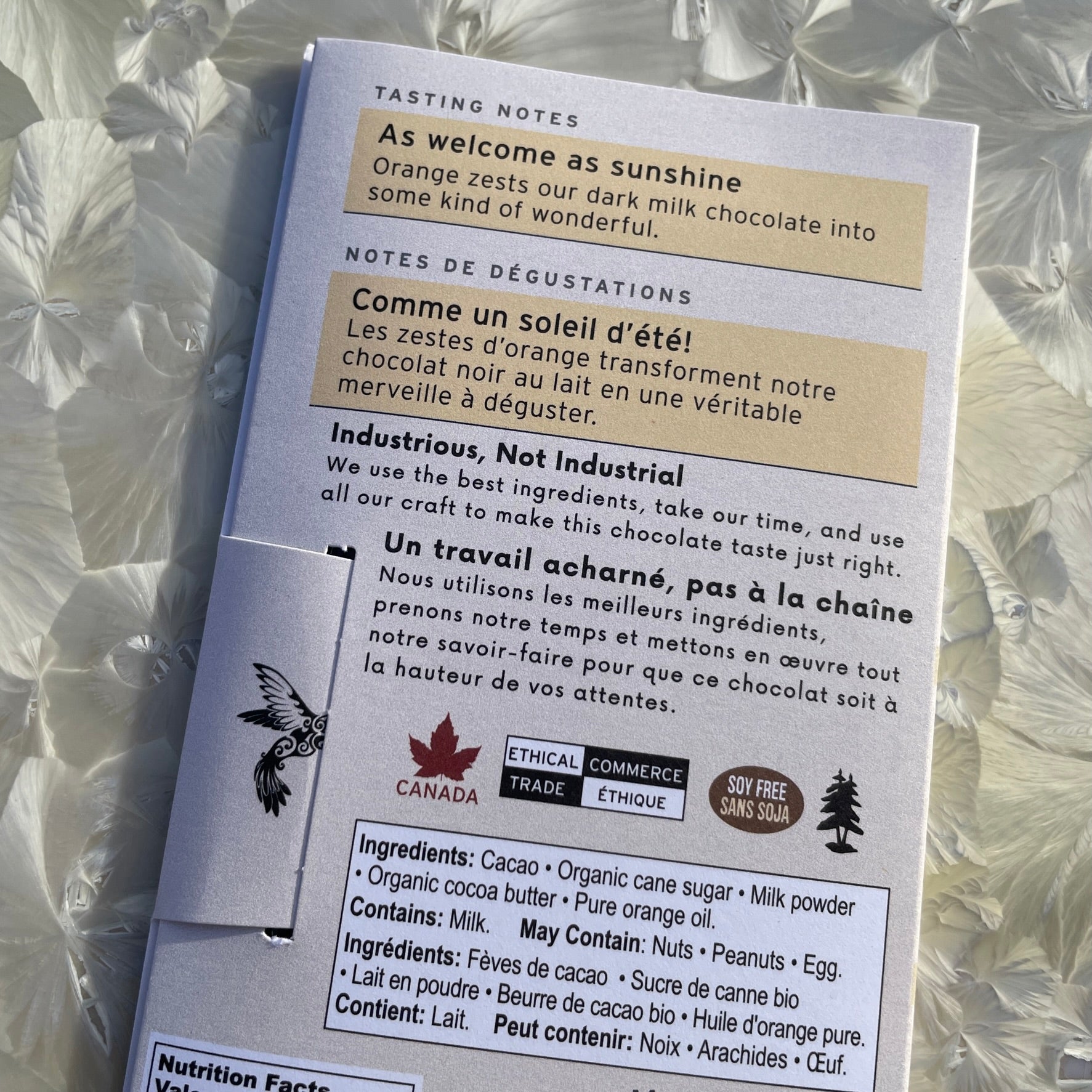 A zesty chocolate bar that's as welcome as sunshine! All it takes is a drop of pure orange essence to transform and elevate our already magical dark milk chocolate. Made with organic, ethically-sourced cacao from Uganda.