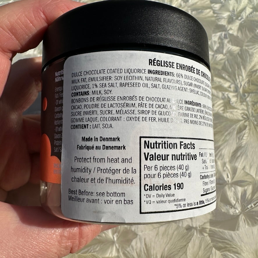 Lakrids by Bülow “C” Sour Strawberry Chocolate-Covered Liquorice Tall Jar