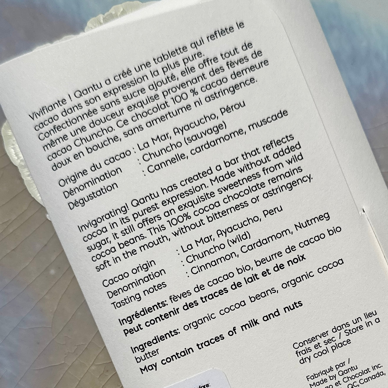Qantu is the discovery of the purest cocoa flavors. We scour Latin America seeking native cocoa beans with exceptional flavors. In our workshop, we transform the beans into a pure bliss that will never fail to surprise your palate.
