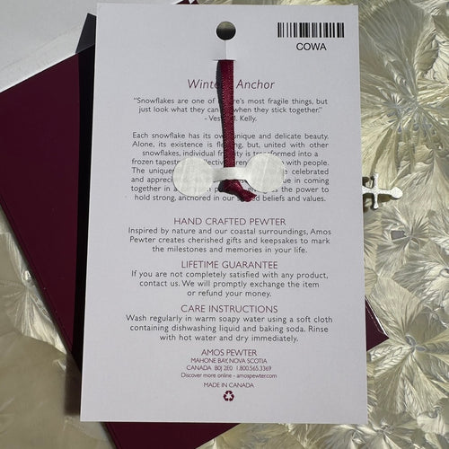 Pewter ornament trimmed with a burgundy ribbon. Packaged in a matching burgundy envelope.