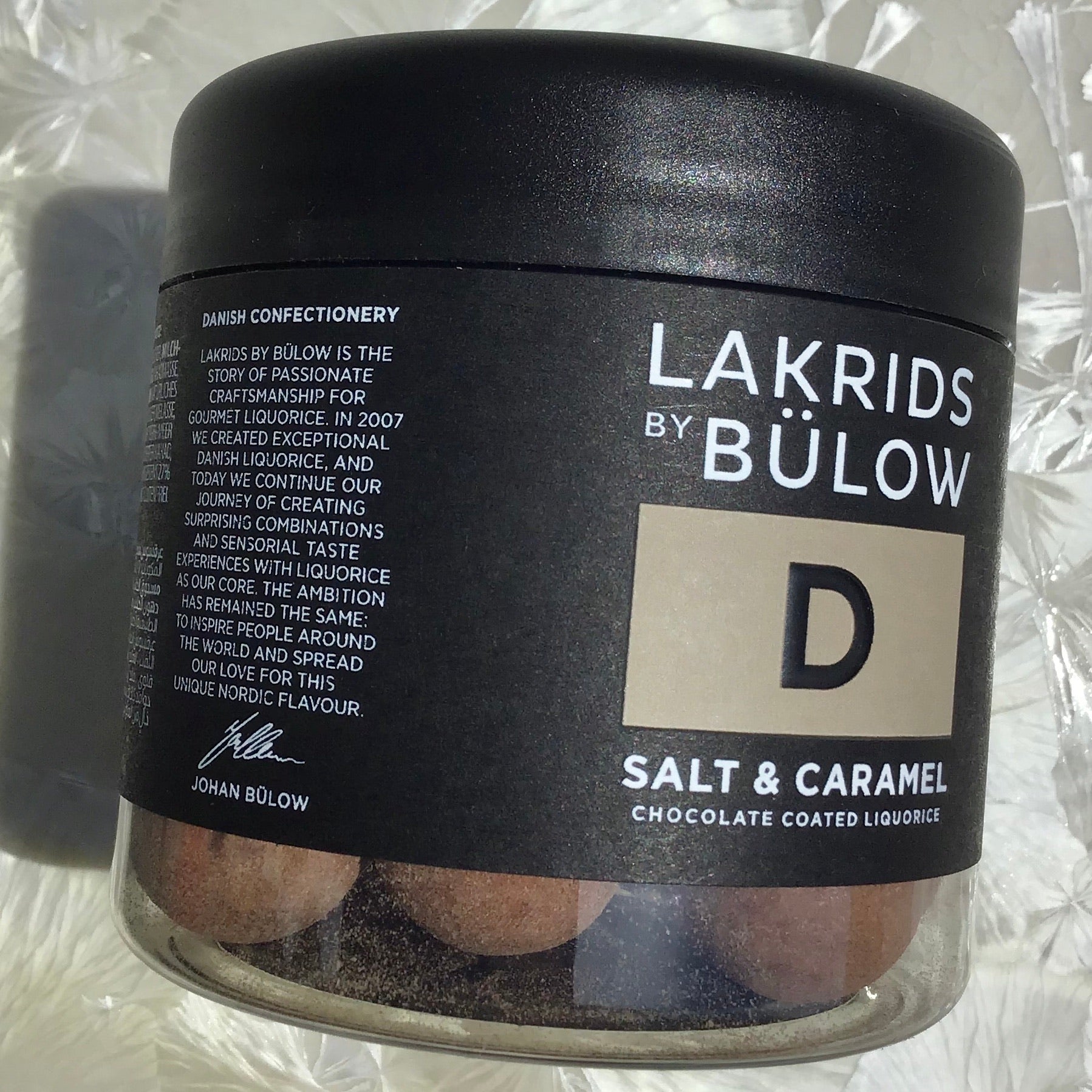 Lakrids D is a sweet liquorice covered in caramelized dulce chocolate – flavored with crunchy flakes of sea salt. Feisty and gentle at the same time. You simply can’t have just one.